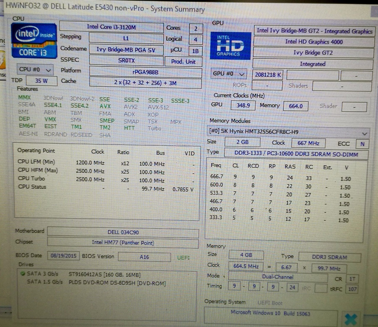CPU: Intel Core i3 3120M (3M Cache, 2.50 GHz)